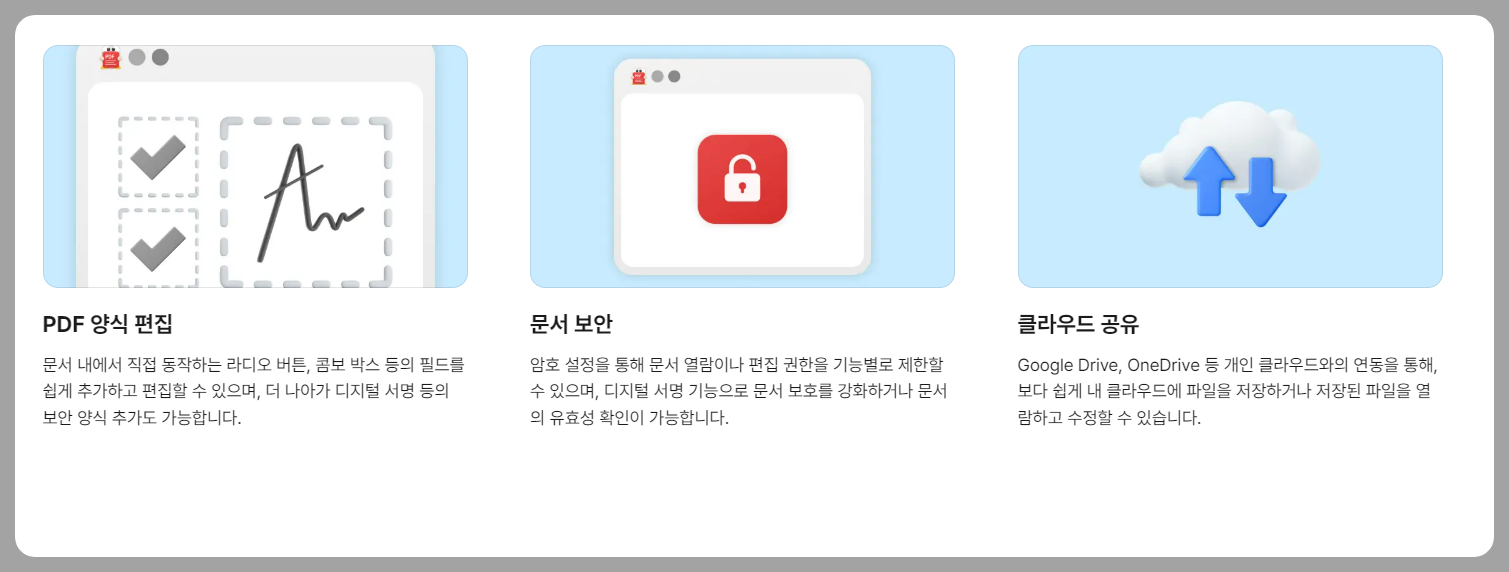 ✅ PDF 내 서명, 보안 설정, 공유 기능 제공