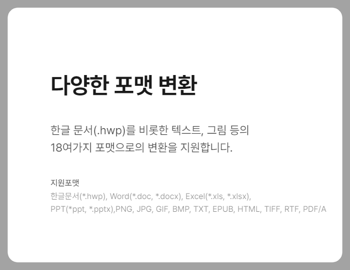 🔹 2) 다양한 포맷 변환 (한글 HWP, Word, Excel, PPT, 이미지 등 18개 포맷 지원)