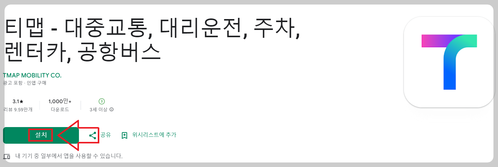 - TMAP 공항버스 앱을 설치합니다. (구글 플레이스토어 또는 애플 앱스토어에서 다운로드 가능)