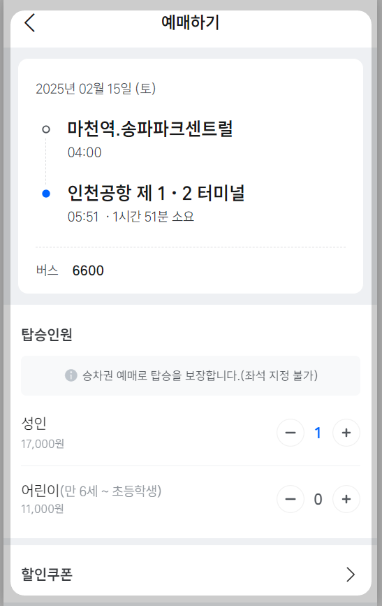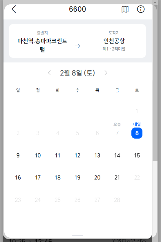 - 도착지: 인천공항 제1터미널, 제2터미널 중 선택해주세요.