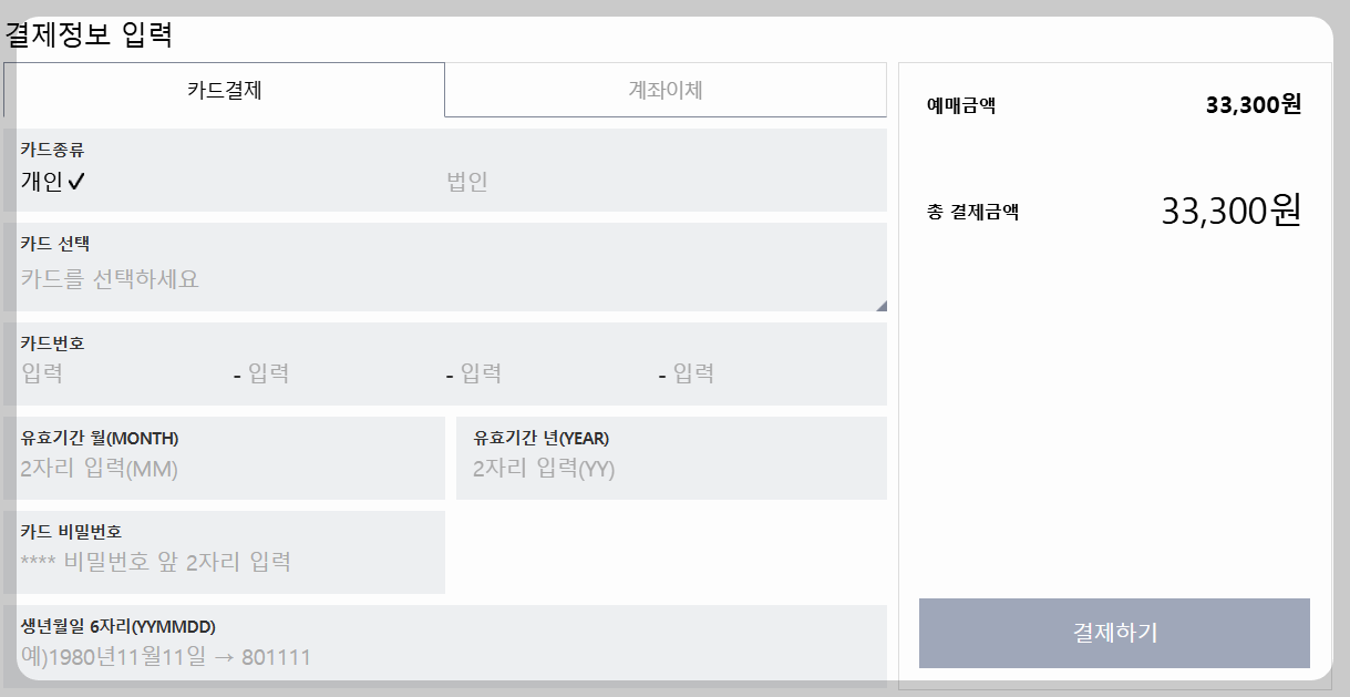 2. 예매 옵션: 비회원 예매 또는 회원 예매 중 선택할 수 있습니다.