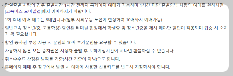 - 고속버스 공식 홈페이지에 접속하여 출발지와 도착지를 입력합니다.