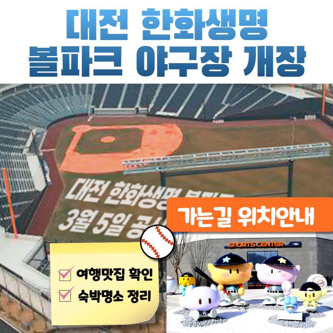 2025년 3월 5일, 대전의 새로운 랜드마크가 될 ‘대전 한화생명 볼파크’가 공식 개장합니다. 오랜 기다림 끝에 탄생한 이곳은 스포츠와 문화를 아우르는 최첨단 시설로 주목받고 있습니다. 대전의 새로운 야구 홈구장의 특별한 점은 무엇인지, 어떻게 가면 좋을지, 근처에서 어떤 음식을 먹고 어디서 숙박하면 좋을지 야구팬들과 방문객들을 위한 완벽한 가이드를 준비했는데요! 대전여행을 계획중이라면 꼭 도움되는 정보이니 참고하시면 좋겠습니다.
