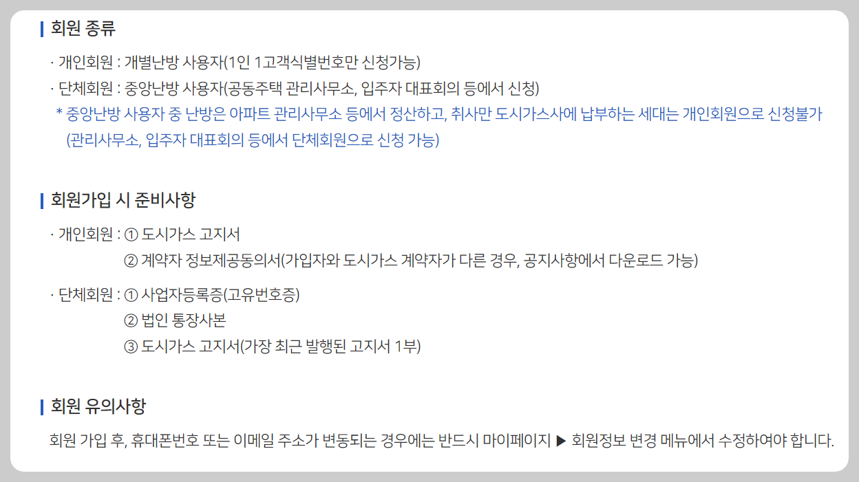 - 도시가스 계약자의 동의하에, 개인정보 수집 및 이용에 대한 동의서도 함께 제출해야 합니다.