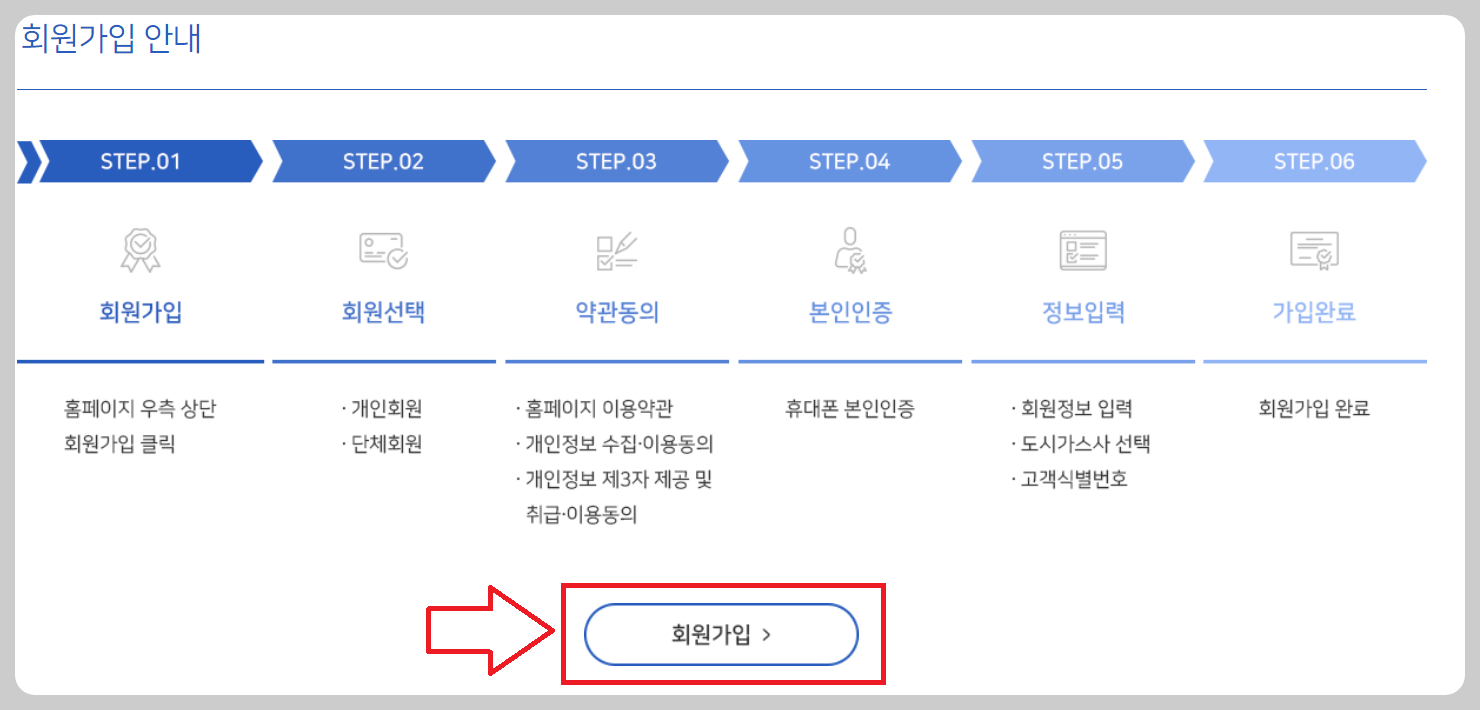 - K-가스 캐시백 공식 사이트(👈여기)에 접속 후 회원가입을 완료하세요.