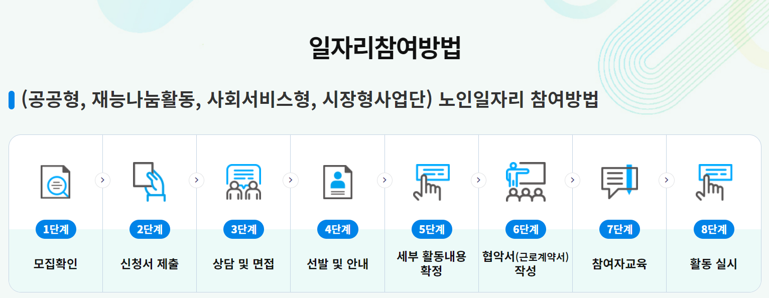 - 활동 내용: 주유원, 경비원, 시험 감독관, 사무 보조 등 민간 기업 연계 일자리