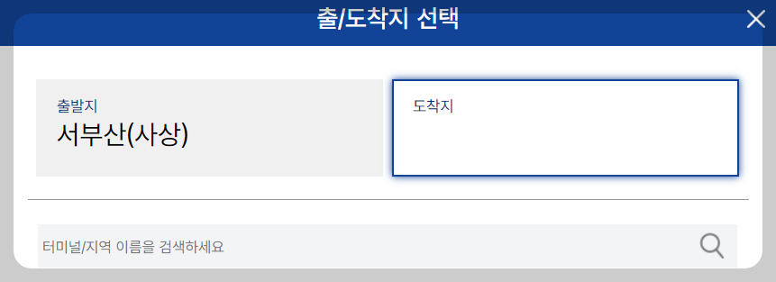 1️⃣ 출발지에 ‘부산 서부’를 입력하세요.