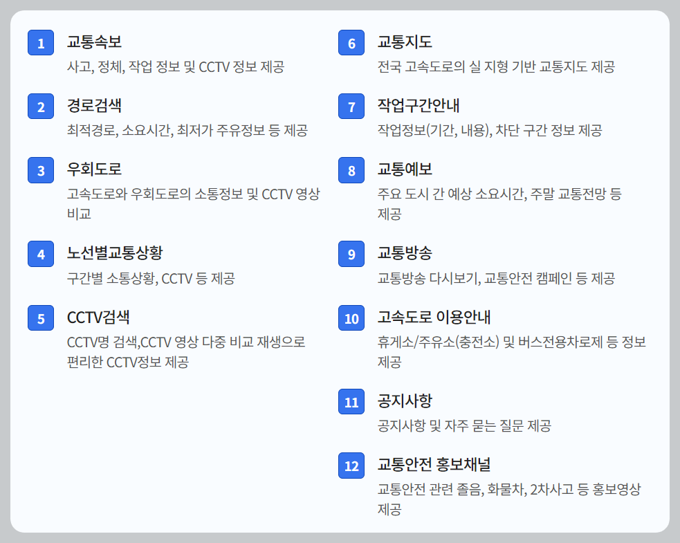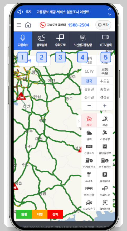 ✔ 장점: 고속도로 정체 및 사고 여부를 빠르게 파악 가능