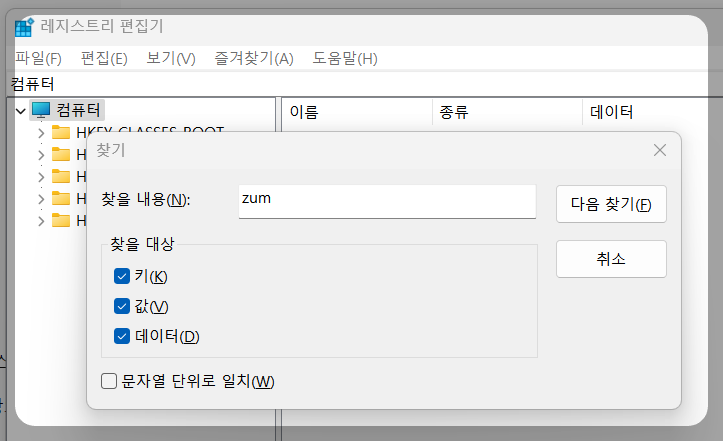 🛠 1. 레지스트리 편집기로 ZUM 삭제