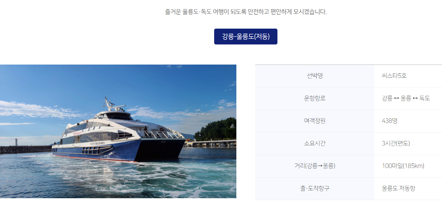 📌3. 씨스타5호 배편 소개 (강릉 ↔ 울릉)