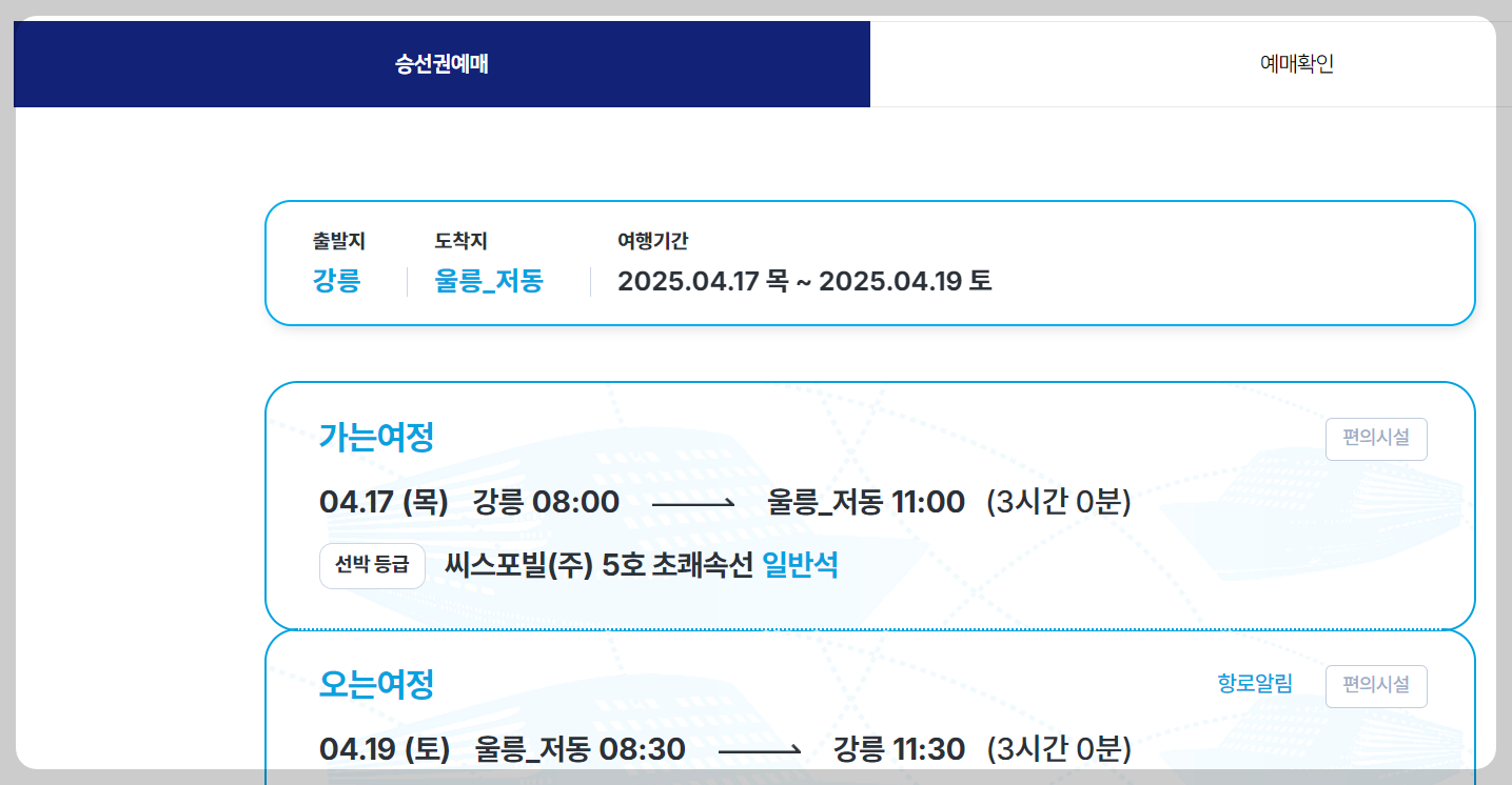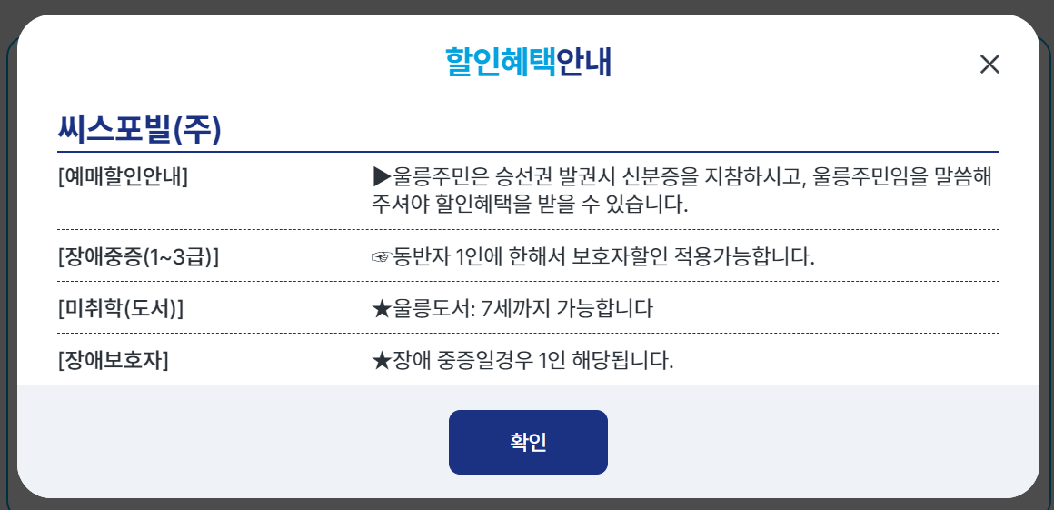 📌2. 울릉도 여행의 첫 걸음, 씨스포빌 예약방법