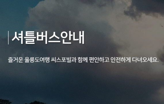 울릉도 배 시간에 맞춰 서울, 경기 각지에서 셔틀버스가 운행되고 있어요. 운전 걱정 없이 강릉항까지 편하게 이동 가능하다는 게 씨스포빌의 큰 장점인데요. 셔틀버스 예약도 가능하니 확인해보세요!