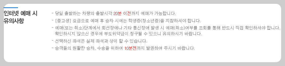 - 당일 인기 노선은 매진될 가능성이 높으니 최소 하루 전에 미리 예약하세요.