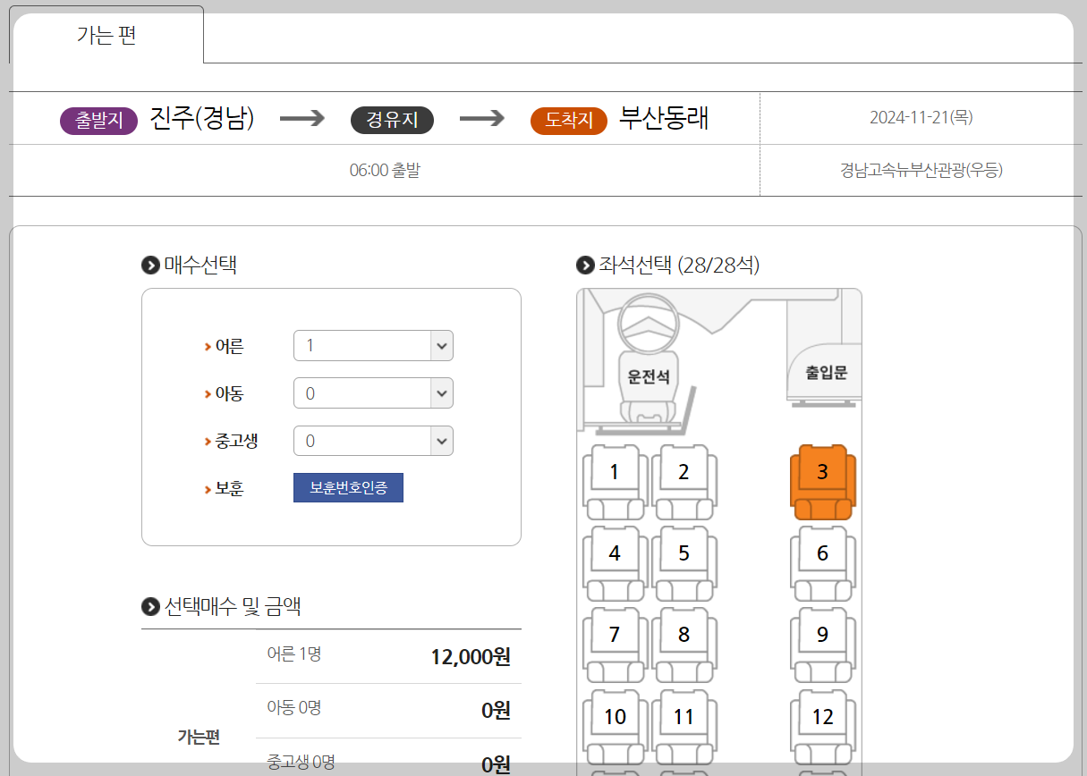 2️⃣ 출발 날짜와 시간을 설정해 운행 노선 및 잔여 좌석 확인