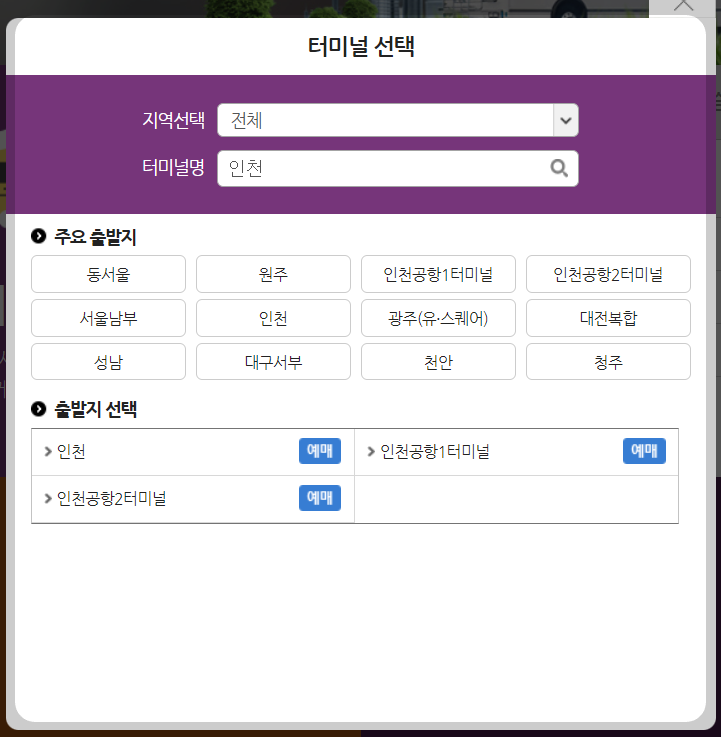 🔴 2. 인천 시외버스터미널 예매 방법