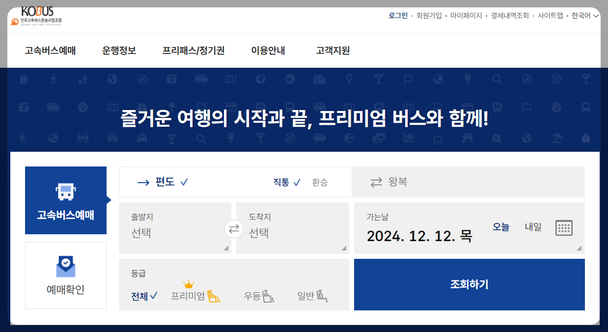 - 코버스 바로가기: 고속버스 통합예매 홈페이지👈여기서 예매가능