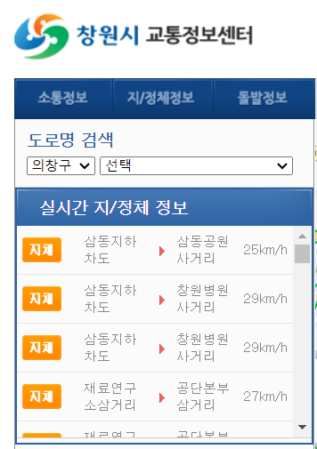 ✔ 창원시 교통정보센터 홈페이지 (https://its.changwon.go.kr/)에서 확인 가능했습니다.