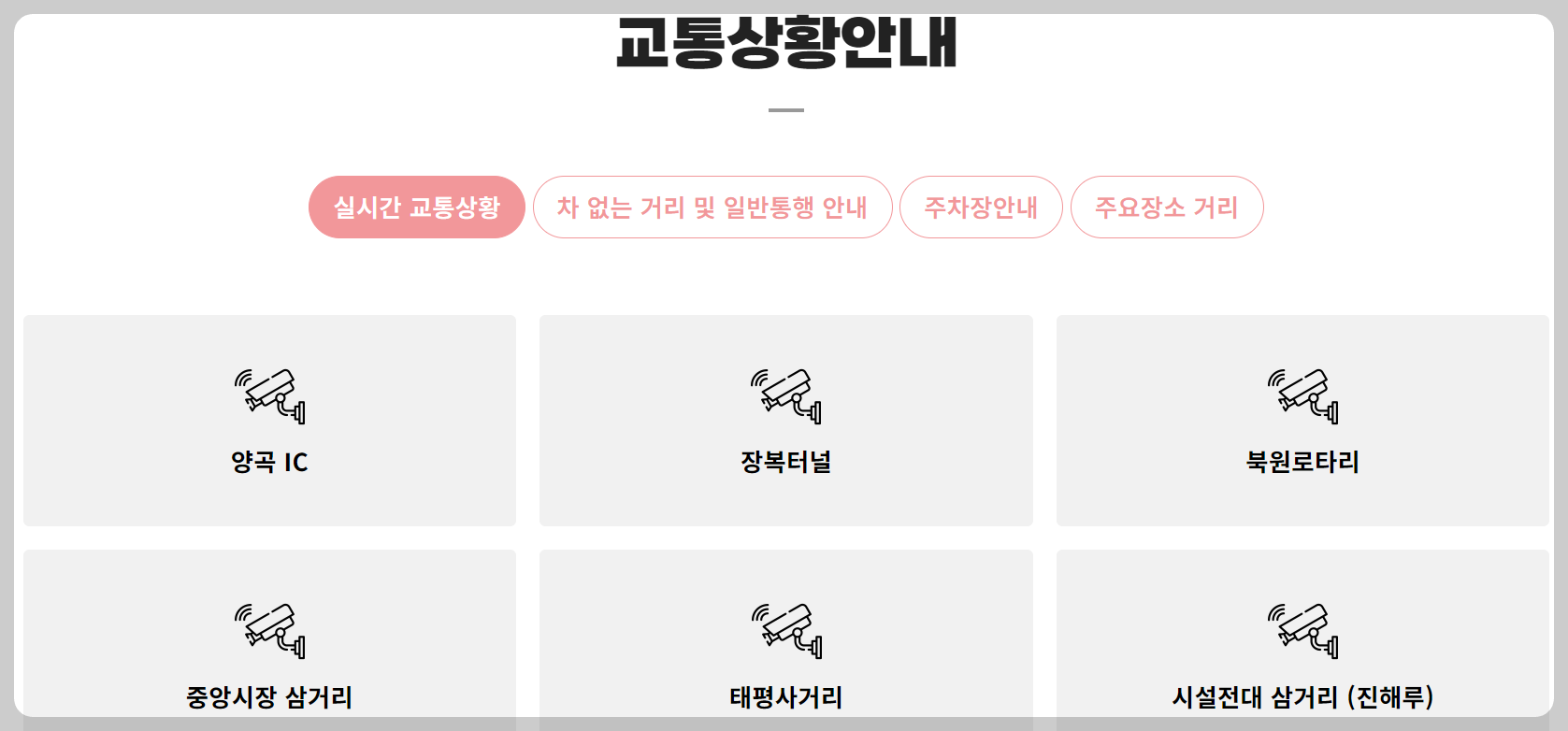 - ‘실시간 CCTV’ 메뉴에서 주요 도로 현황을 볼 수 있었습니다.