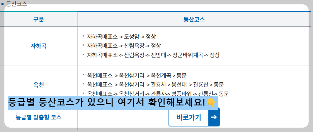 ✅초급자 등산코스 : 무릎이 불편하거나 체력에 자신이 없으시다면