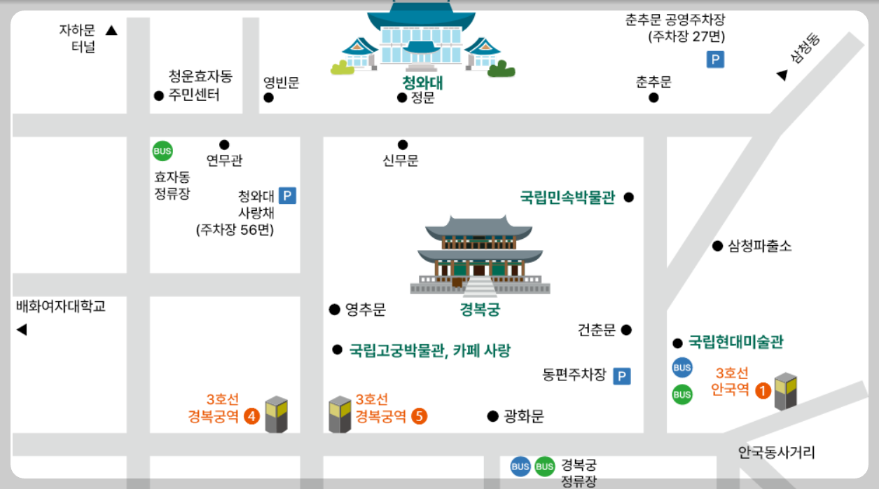 - 장점: 청와대 정문, 관람접수처까지 도보 3분