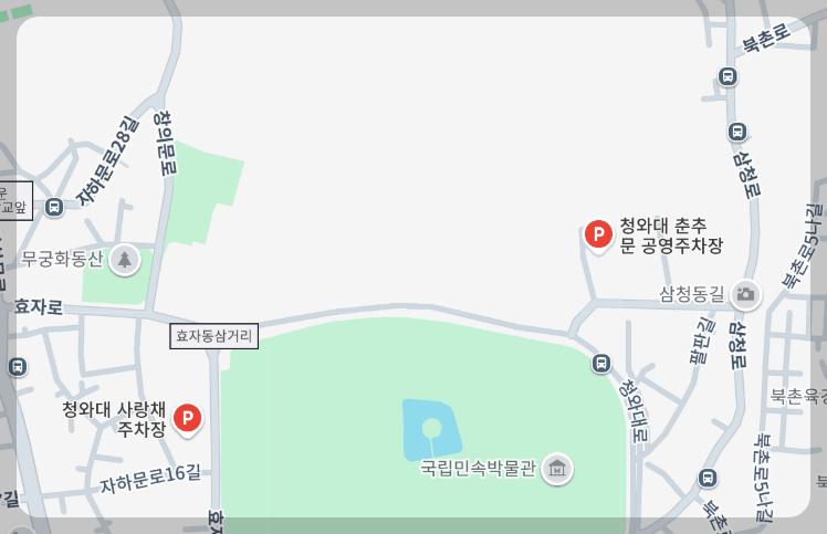 - 위치: 삼청동길 초입, 청와대 춘추문 인근