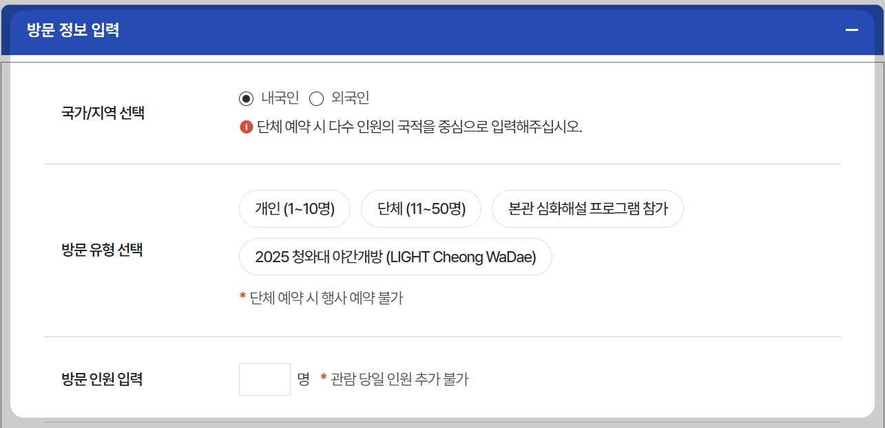📌 청와대 밤마실 예약 방법 (2025년 기준)