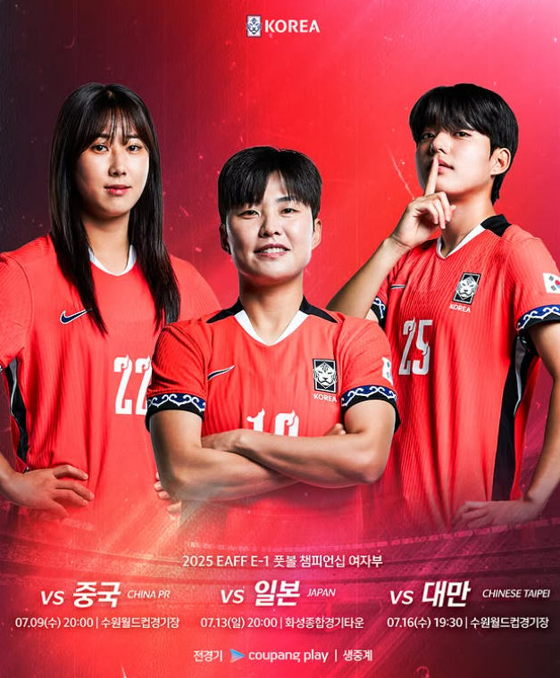 7월 9일 수요일 오후 8시, 수원월드컵경기장에서 열리는 중국과의 첫 경기부터 함께 응원하며 지켜봐 주세요! 🇰🇷⚽🔥