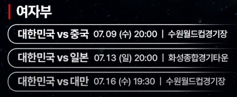 🇰🇷 대한민국 여자대표팀 일정: