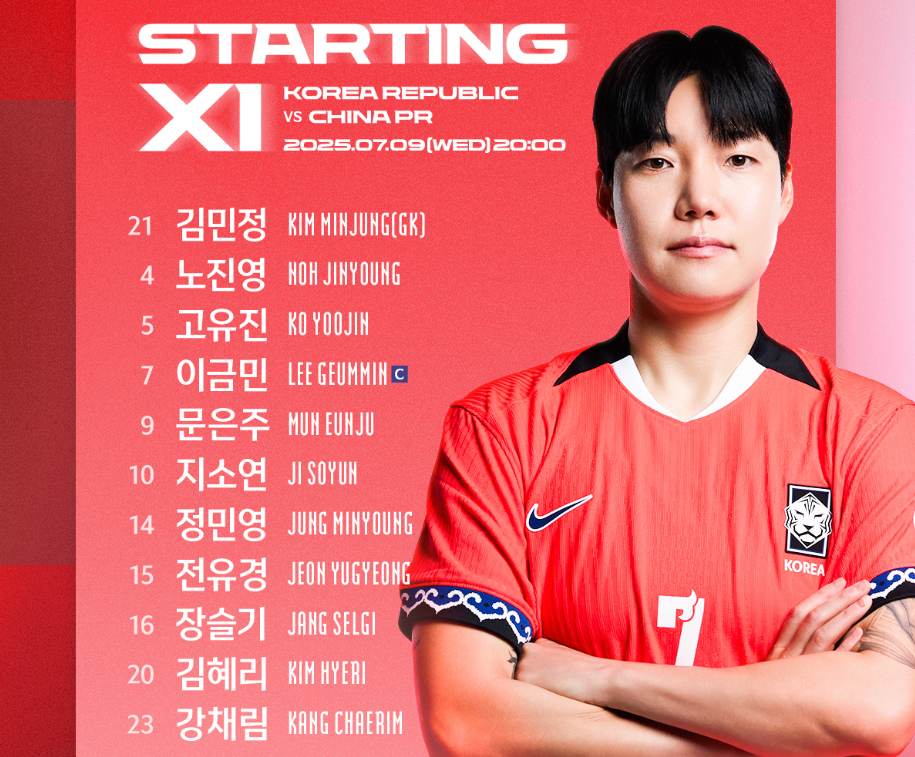 주목할 점은 지소연이 여전히 공격의 핵심 역할을 맡고 있으며, 유럽파 이금민이 중원에서 중심을 잡아주고, 국내파 선수들과 유기적인 호흡으로 중국전 승리를 노린다는 점입니다.