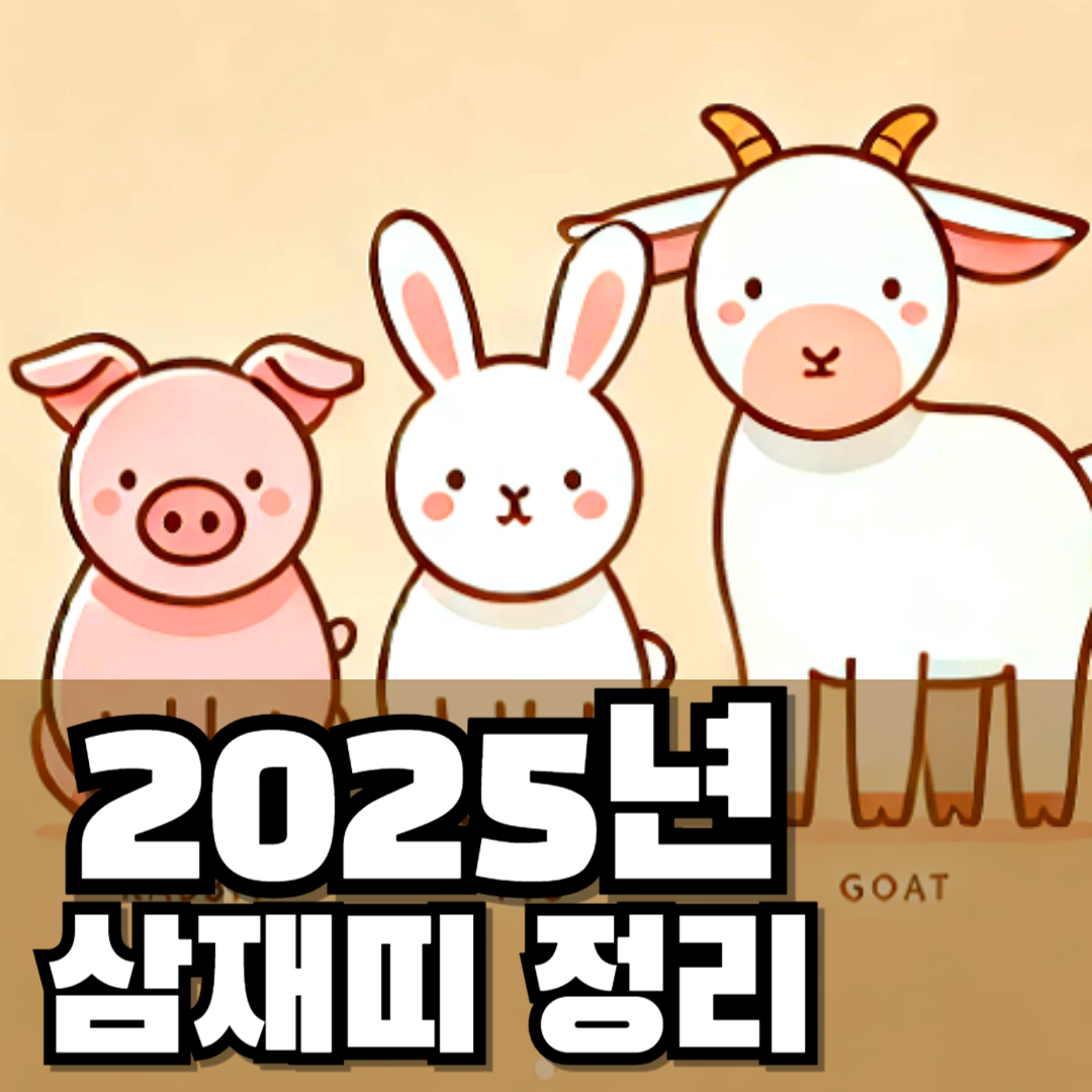 2025년에 대표적인 삼재띠는 토끼띠, 양띠, 돼지띠 인데요. 각 띠별로 주의할 점이나 특징에대해 자세히 정리했으니 참고하세요.