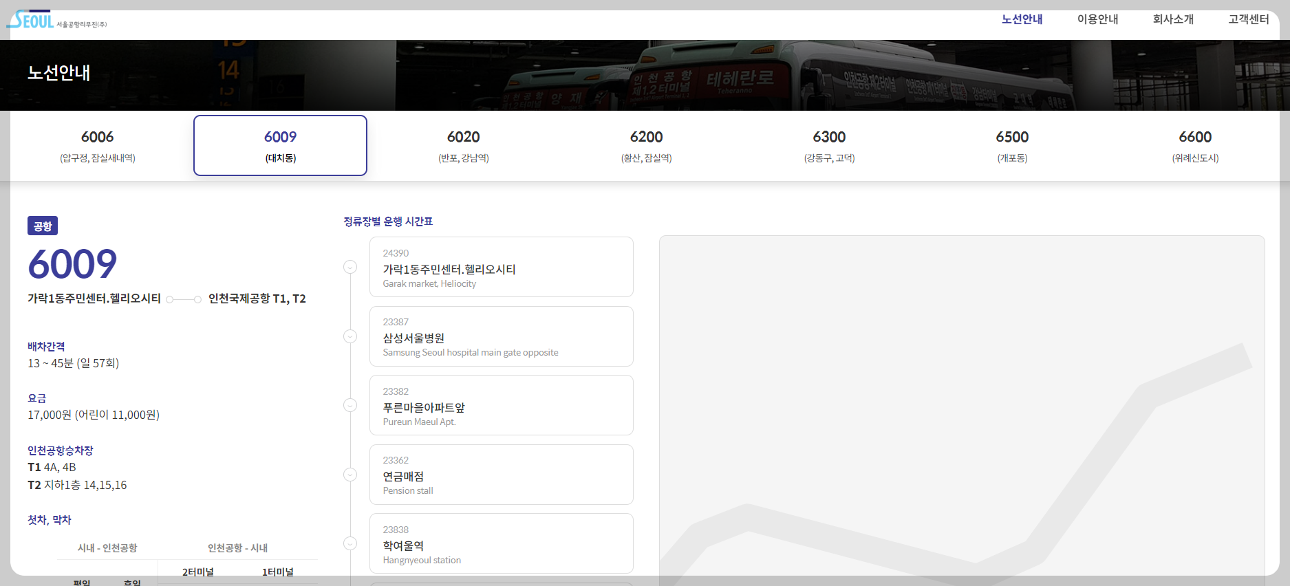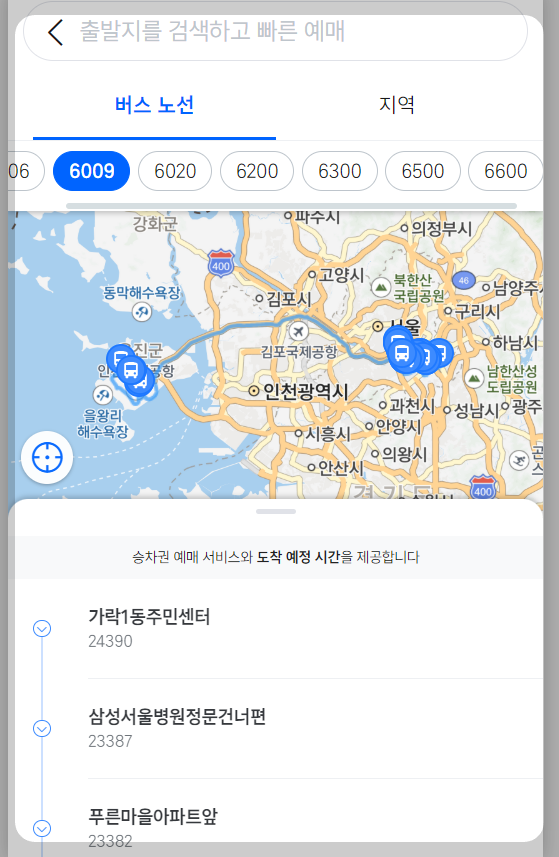 - 검색창에 “6009번 공항버스” 또는 탑승할 정류장 이름 입력