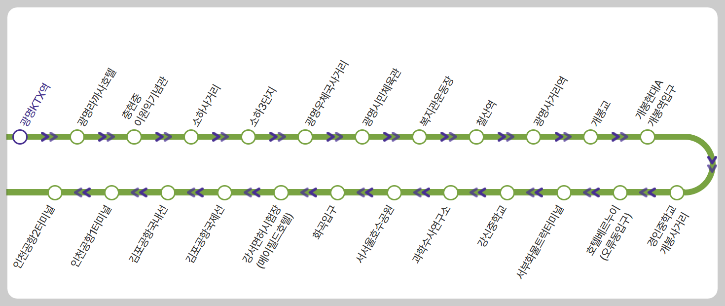 - 배차 간격은 시간대에 따라 13~45분으로 변동될 수 있습니다.
