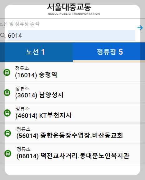 - 검색창에 “6014번 공항버스” 또는 탑승할 정류장 이름을 입력합니다.