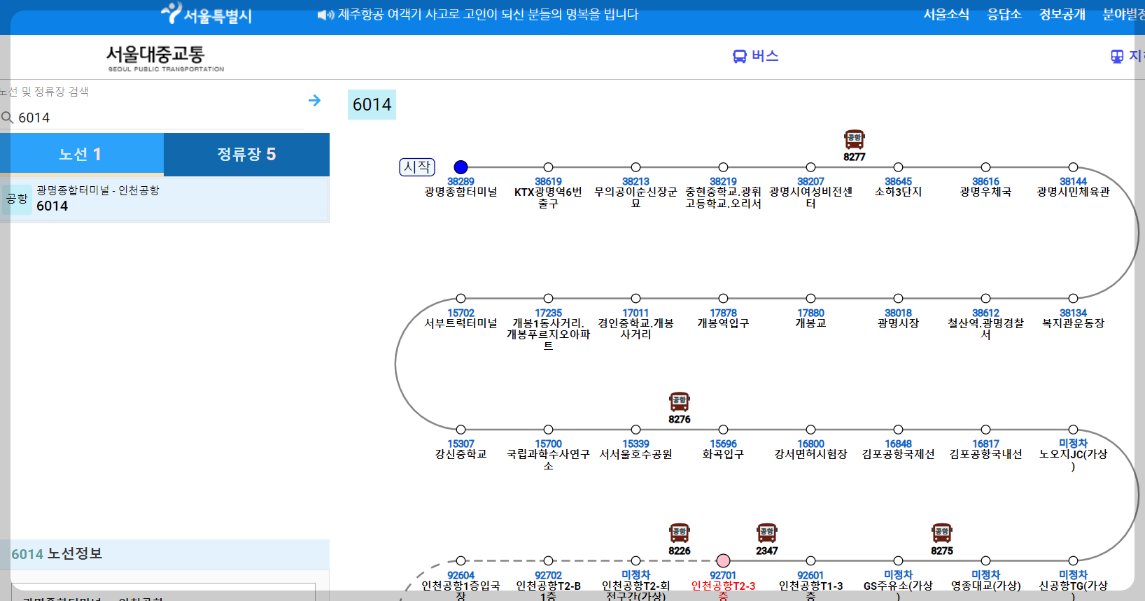🔴 5. 6014번 공항버스 주요 노선 및 정류장
